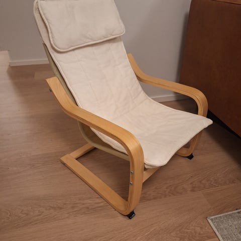 Ikean juniorituoli musta, hyvä kunto mutta toki kulumaa jo löytyy. Haku Muhokselta kylän pinnasta.