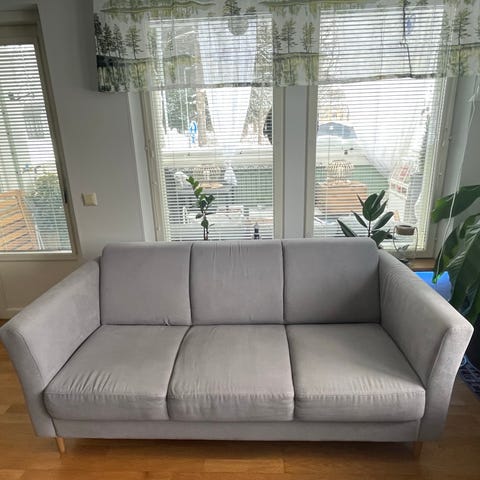 Kolmen istuttava sohva tosiaan. Koirat pentu aikana vähän maisteli sohvaa niikun näkyy, mutta se ei käyttöä haittaa. On tilava ja hyvä sohva.