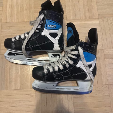 CCM jääkiekkoluistimet lapsille, koko 35. Väri musta keltaisilla yksityiskohdilla. Nauhakiinnitys ja teräkiskot jääkiekkokäyttöön. Soveltuvat lasten tai nuorten jääkiekkoharjoitteluun ja luisteluun. Edelleen hyvin käyttökelpoiset, varsi on vielä jämäkkä.