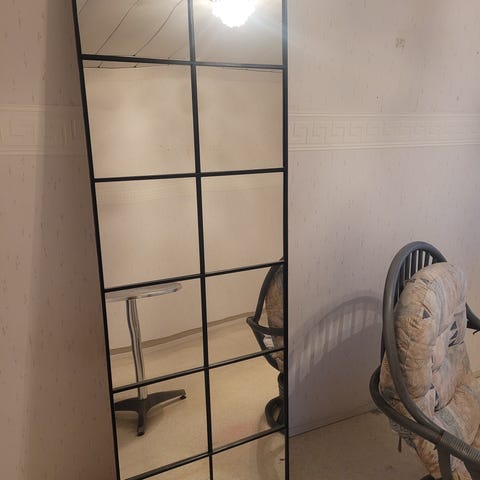 Tarpeettomaksi jäänyt ehjä peili, alareunassa kuvan vas. jotain jälkeä, muuten ok kuntoinen.