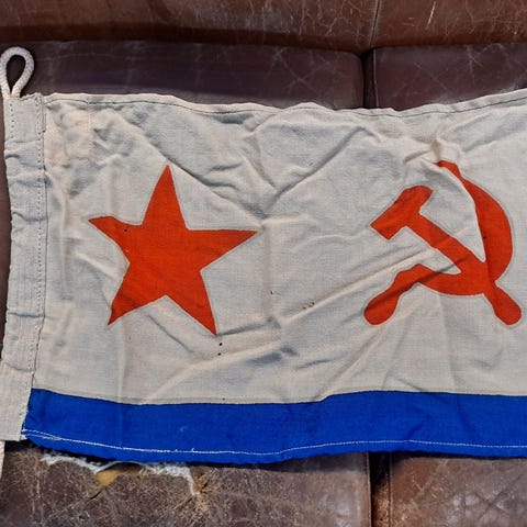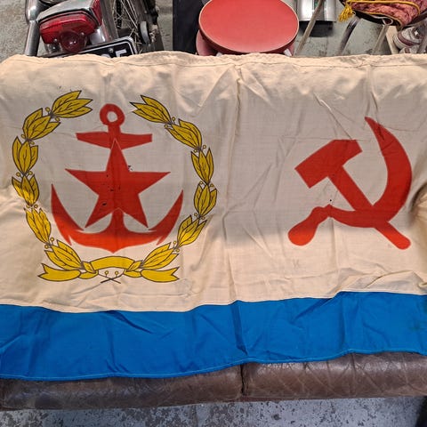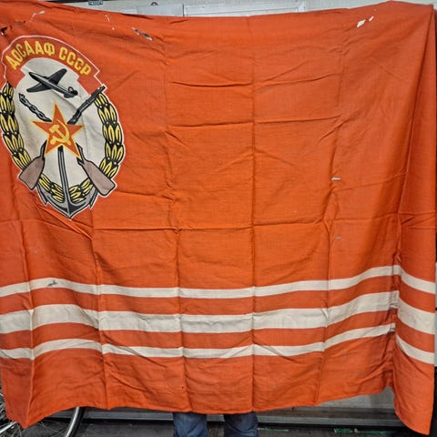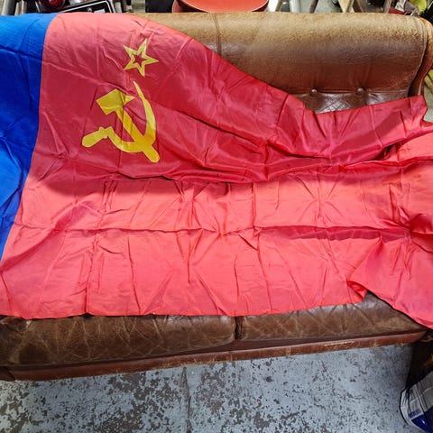 USSR eli Neuvostoliiton lippu, ilmeisesti Ukrainan Neuvostotasavallan lippu. Koko noin 90cm x 180cm.