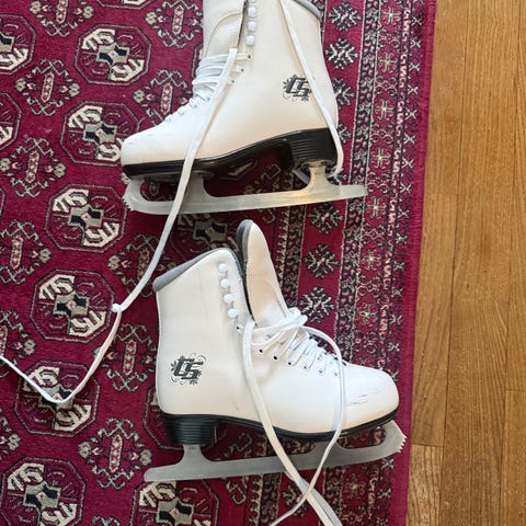 CCM taitoluistimet beige-valkoisina. Perinteinen nauhakiinnitys ja teräskisko yleiseen luisteluun. Soveltuvat esimerkiksi harrasteluisteluun ulko- tai tekojäillä. Koko n37-38. Hieman kuluman jälkiä mutta luistimet on hyvässä kunnossa, varsi on tukeva. Vaatii teroituksen.