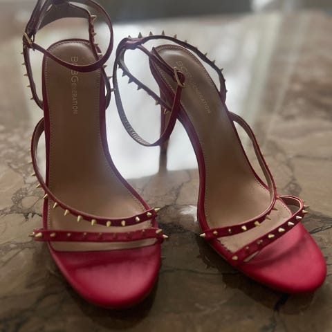 Naisten pinkki- mustat, uudet korkokengät,tukevat korot 10 cm koron korkeus,säädettävä nilkkaremmi, koko 40 eu.upeat neo pinkki mustat käärmeenahka kuosi, upeat,todella katseenkääntäjät