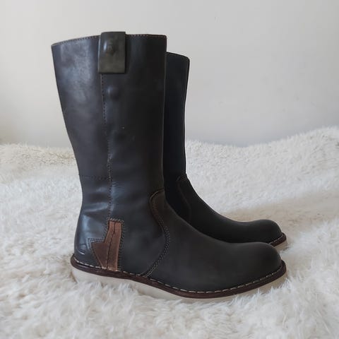Nämä mustat kiilakorkosaappaat on valmistettu karvasta ja nahasta. Varressa on kaksi säädettävää nahkaremmiä, joissa on sydämenmuotoiset metallisoljet, sekä pörröinen yläreunan turkisreunus.Koko 41. Kiilakorko.Valmistaja: OSCAR sportVäri: mustaMateriaali: nahka, karva, tekstiili, kumi
