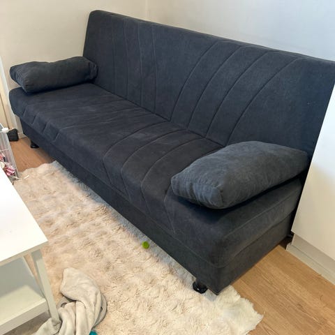 Käytössä ollut jo vuosia, kulumisen jälkiä löytyy sohvasta. Vuodelaatikon mekanismi hyvässä kunnossa. Haku mahdollisimman nopeasti,koska nostetaan tänään ulos uuden tieltä. Kantoapua saa. Koiratalous. Hinnasta voidaan neuvotella paikan päällä tai hae tänään pois uloskanto hintaan.