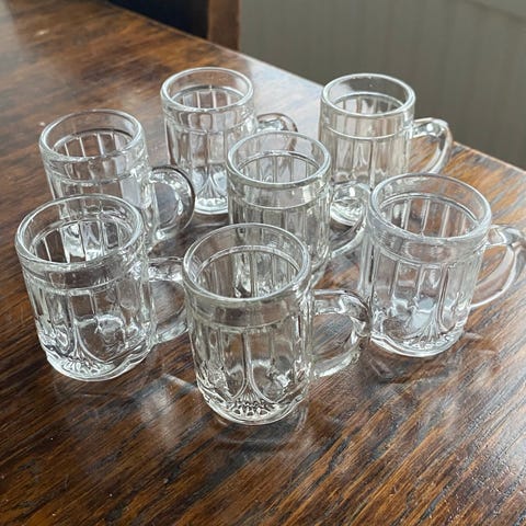 Lasinen oluttuoppi ja pienempi muki, joissa on skottiaiheinen painatus säkkipillinsoittajasta. Molemmissa on korvakahva ja kirkas, paksu lasi. Molemmissa tuopeissa on lisäksi kullanvärinen reunus yläreunassa. Sopivat esimerkiksi juoma- tai koristekäyttöön.Tuopit 60-luvulta. Iso korkeus 11 cm lev. 7 cm , pieni korkeus 7,5 cm lev. 4,5 cm. Pienen pohjasta puuttuu pieni pala. Nouto Liedosta, jolloin maksuna vain käteinen tai toridiilinä. Yhteishinta 40 eur.