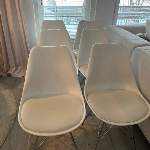 Muuton vuoksi kolme ruokapöydän tuolia. Keinonahkan tapainen pinta. Hyvä kuntoiset. Metallijalat. Myynnissä myös ruokailuryhmänä.