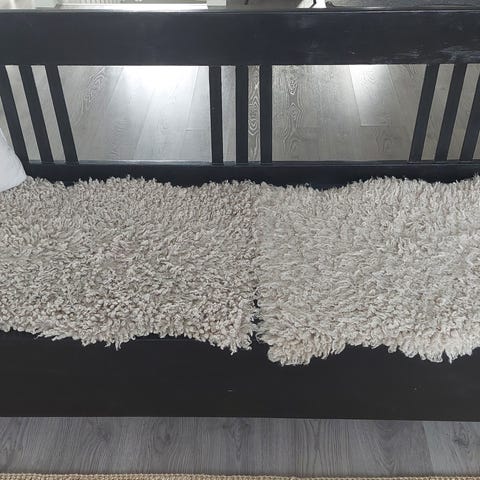 Valkoiseksi maalattu puusohva. Patja mukaan. Vain nouto. Käsinojasta maali lähtenyt lohkeilemaan. Tarkkoja mittoja en ole ottanut. Lisään ne myöhemmin