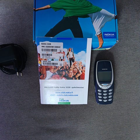 Myydään alkuperäisessä laatikossa oleva nokia 3310. Sisältä puhelin, laturi, alkuperäinen kuitti. Boxi. Käyttöohje.