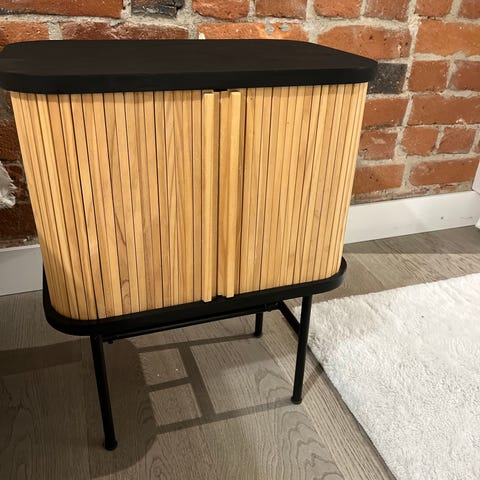Myydään 2kpl kuvanmukaisia yöpöytiä. Kuvia ottaessa huomattu toisessa takaseinässä halkeama (ei näy tai haittaa käyttöä). Rulo-ovet, metallinen jalka. Toisen pöytätasossa myös pientä valkoista jälkeä. Muuten siistit ja hyväkuntoiset, toisen ovi ollut aina hieman jämäkkä mutta aukeaa kuten tarkoitettu.