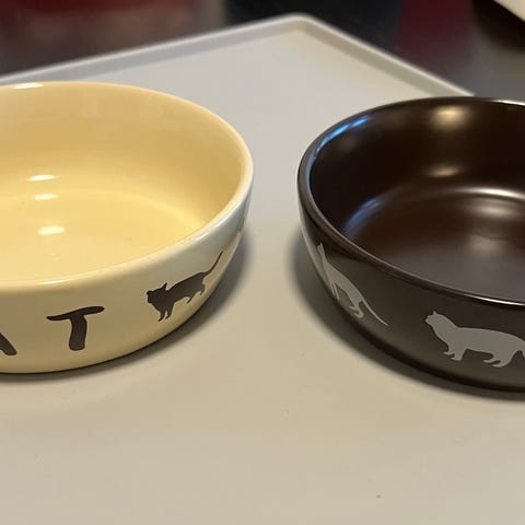 2x Matalat keraamiset kissanruokakupit/-lautaset