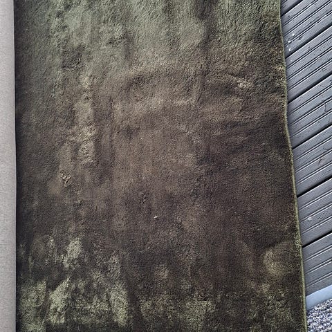 Muutaman vuoden käytössä ollut juuttimatto, lasitetulla parvekkeelle. Aurinko haalistanut mattoa jonkin verran.