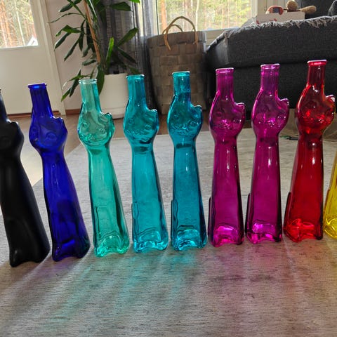 Happy Cat kissapulloja. Osa yli 20 v vanhoja. Myydään kaikki yhdessä nipussa nopeasti pois