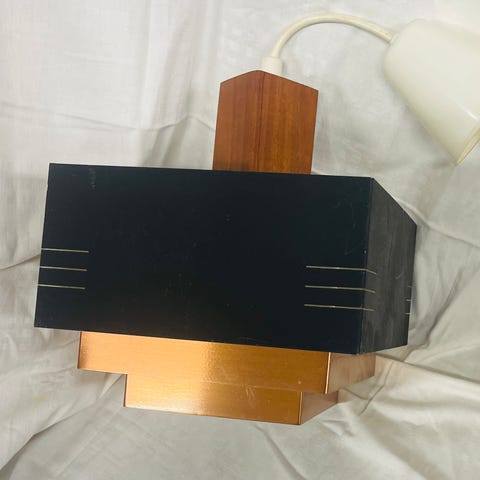Leo Forell Oy:n valmistama tai maahantuoma vintage-valaisin. Valaisimessa on nähtävissä pieni etiketti, jossa lukee "Leo Forell Oy, Helsinki".