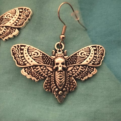 Pimeässä hohtavat lepakko ja kuu -aiheiset korvakorut vaikka Halloweeniin. Ehjät ja hyvässä kunnossa. Kokonaispituus korviksilla noin 7 cm.