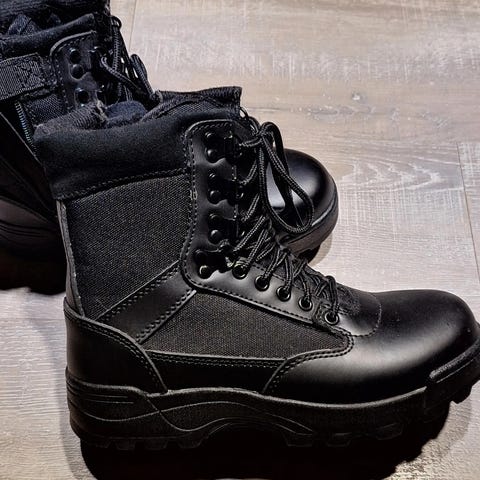 Khakin väriset varsikengät. Kevyet, pitävä pohja, vahvistettu kärki ja kantapää. Sopii niin maastoon kuin kaupunkiin.