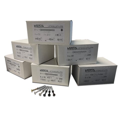 20€ 1000 kpl Listanaulatulppa LIONFIX 5X30mm keltapassivoitu