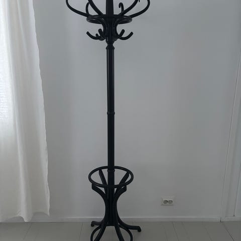 Tyylikäs ja tukeva Venla-pystynaulakko. Metallivartinen naulakko sopii pieneen tilaan. Naulakon korkeus on 170 cm ja jalan halkaisija 30 cm.