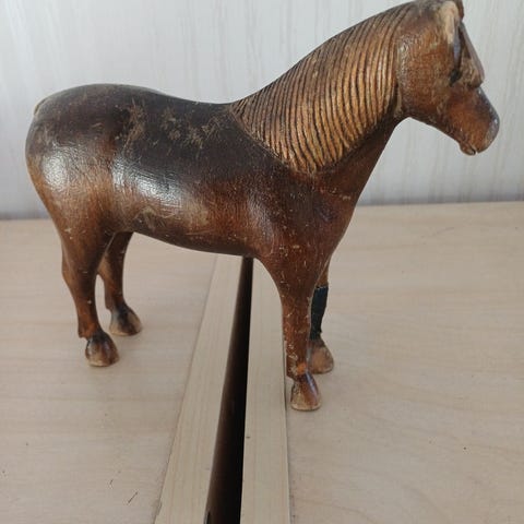 Puuhevonen koriste-esine, oranssi käsinmaalattu pinta monivärisillä kuvioilla. Sopii sisustusesineeksi hyllylle, pöydälle tai kokoelmaan. Materiaalina puu, seisoo neljällä jalalla. Koristeellinen maalattu satula ja harja molemmin puolin hevosta.