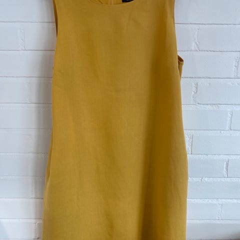 Nanson upea pitkä Luoto mekko 100 % pellavaa. Väri kaunis tumman punainen, ei haalistumia, hyvä kunto kaikin puolin. Hihaton, helmaan levenevä malli, voi solmia eteen tai taakse, istuvaksi tai väljemmin. TASKUT, vetoketju takasaumassa. Kai-kai n. 49,5 cm (tuntuu isommalta), olka-helma n. 122 cm.