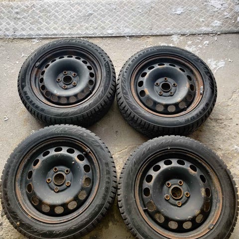 195/65 15 tuumaa kevytmetallivanteet. Hyvät vanteet renkaineen ovat lopu, olen ollut Cadilla, jako 5x112, keskireikä 57.1