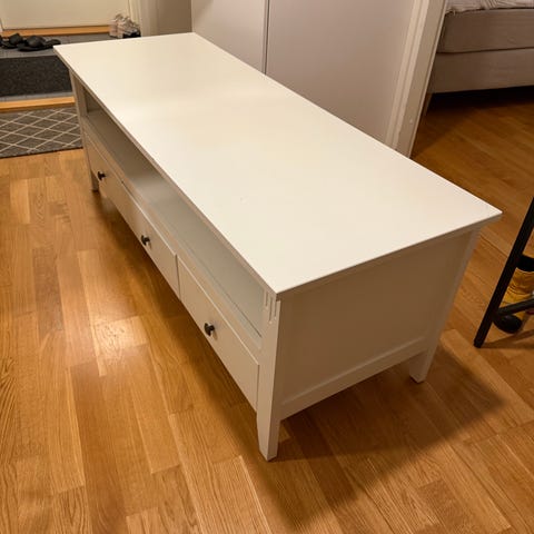 Myynnissä tv-taso. Pientä kulumaa keskellä jossa tv on sijainnut, muuten hyvässä kunnossa. Vain nouto