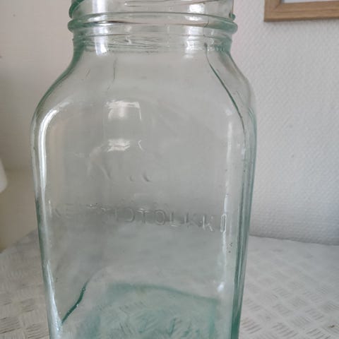 Myydään hyväkuntoinen Karhulan lasi keittiötölkki.