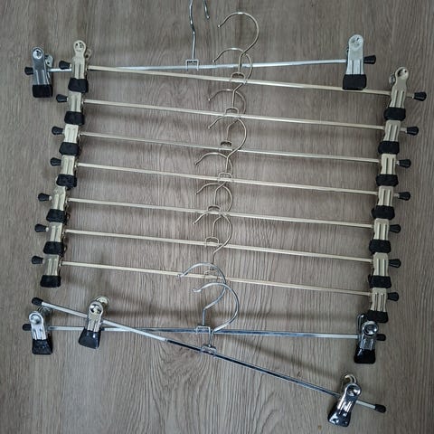 Mawan kumipäiset hyväkuntoiset klipsihenkarit 15 kpl. Ripustusleveys 22 cm.