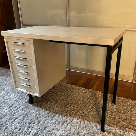 Myydään pakettina pöytä ja tuoli!! Pöytä on mekaanisesti säädettävä korkeudeltaan. Pöytä on päällystetty valkoisella muovilla, joten se on helppo vaihtaa/irroittaa. Tuoli on hyvä kuntoinen ja ostettu ikeasta, korkeutta voi myös säätää. Toimitustapa on nouto. Pöytä+tuoli 20€