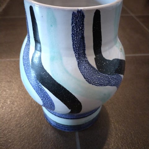 Korkeus noin 22, halkaisija noin 13,5cm.ehjä. pinnassa pieniä värimuutoksia läheltä katsottuna