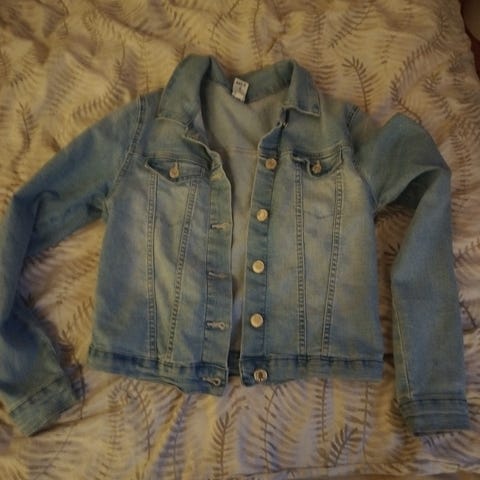 Ihana joustava tumma denim farkkutakki, koko 164. Kissatalous. Nouto tai postitus. #farkkutakki
