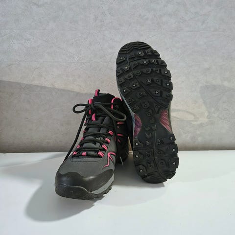 Vähän käytetyt talviulkoilujalkineet pitävillä nastoilla. Hengittävä, veden-ja tuulenpitävä soft shell päällinen ja lämmin thinsulate vuori.