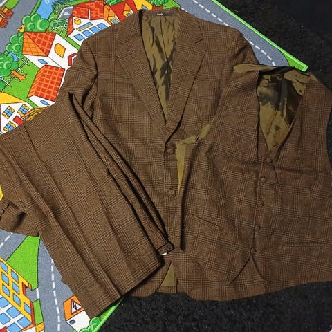 1980-luvun Seppälän miesten puku harmaa koko 52