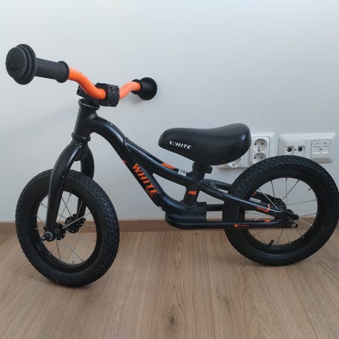 XC White potkupyörä lapselle. Koko noin 12" renkailla. Rungon väri vaaleanvioletti ja satula valkoinen. Pyörässä on matala runko helpottamaan kyytiin nousua ja leveät renkaat tuomaan vakautta ajamiseen. Sopii tasapainon harjoitteluun ja pyöräilyn opetteluun pienille lapsille.