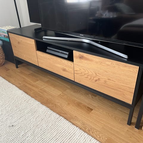 Sotkasta ostettu noin puolitoista vuotta vanha tv taso. Kunto on hyvä, hieman kuitenkin käytönjälkiä näkyy. 1 kuvassa ovissa näkyy tahroja ja myöskin 4 kuvassa näkyy jokin tahra, jota en ole koittanut pestä.