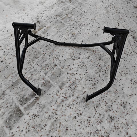 Alkuperäiset kaatumaraudat pulverimaalattu enkä lopulta asentanut niitä paikoilleen. Ovat vielä muoveissa mutta voin lähettää tarvittaessa tarkempia kuvia.