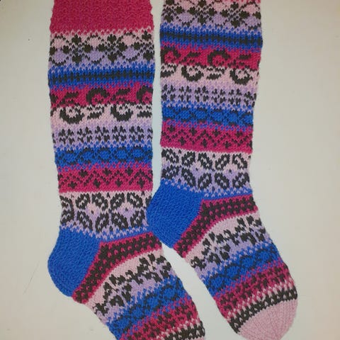Villasukat 7 veljestä langasta. Varren mitta 35 cm ja jalkaterä 25 cm. Postikulut tarvittaessa 4.00 s-kokoissa paketissa tai vaihtoehtoisesti Toridiilin kautta.