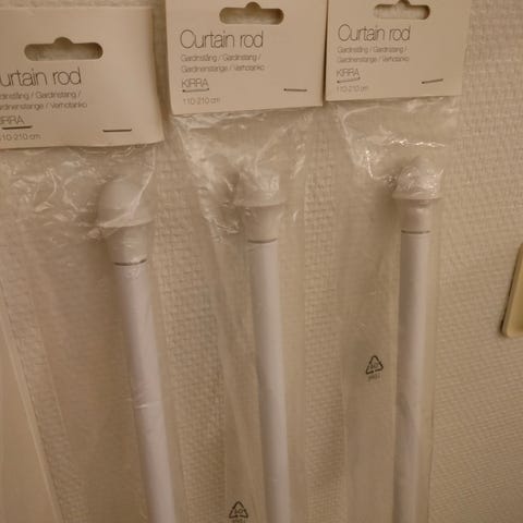Kaksi säädettävää verhotankoa 180-300cm. Hinta 5€/kpl.
