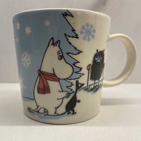 Hyväkuntoinen Arabian muumimuki Hiihtokilpailu (2010). Näitä mukeja 2 kpl. Hinta per kpl.