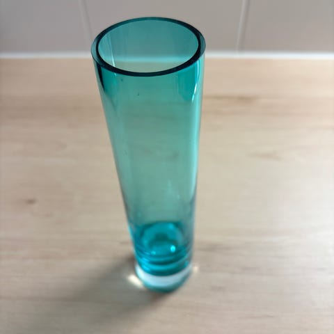 Myydään vihreä yhden kukan maljakko. Korkeus 29 cm.