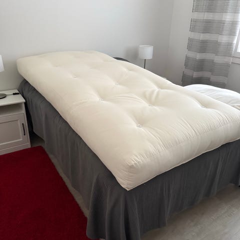 Futonia patja 160x200 etsii uutta omistajaa. Runko tulee mukana. Pieni tahra patjan reunalla, kuvassa näkyy. Nopea nouto.
