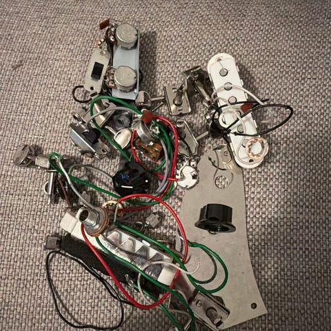 Sähkökitaraan tarkoitetut mikrofonit, joihin kuuluu yksi humbucker-mikrofoni ja yksi yksikelainen mikrofoni. Humbucker on kaksikelainen ja väriltään vaalea/cream. Yksikelainen mikrofoni on myös vaalea ja siinä on hammastettu metallinen suojalevy. Mukana johtoja ja kiinnityslevyt mikrofonien asennusta varten. Soveltuu sähkökitaraan varaosaksi tai mikrofoni päivitykseen, tarkemmat tekniset tiedot ja mitat kannattaa varmistaa ennen asennusta omiin tarpeisiin sopivuuden varmistamiseksi.
