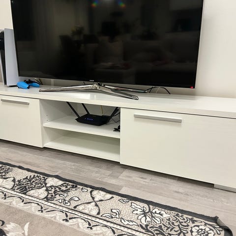 Korkeakiiltoinen tv-taso. Hyvässä kunnossa. 180x38x45
