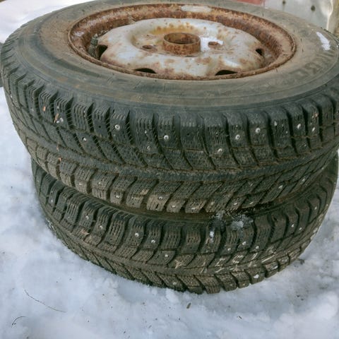 Pintaa 6-7 mm. Ok nastat. Vanhat renkaat eli älä kysele paistoa.