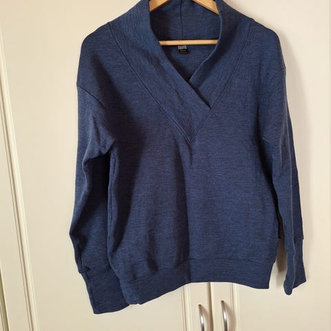Ommellisen lyhyemmän mallinen rentoilutakki koko L. 100% luomupuuvillaneulosta. Edessä taskut. Kiinnitys edestä yhdellä napilla.