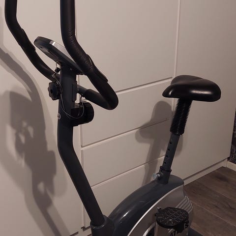 Kuntopyörä sisäharjoitteluun. Väri musta/punainen. Pyörässä on säädettävä satula ja ohjaustanko, polkimissa varmistushihnat sekä käsisäätöinen vastuksen säätö. Etuosassa on pyörät siirtämistä varten. Sopii kotikäyttöön aerobiseen harjoitteluun ja kunnon ylläpitoon.