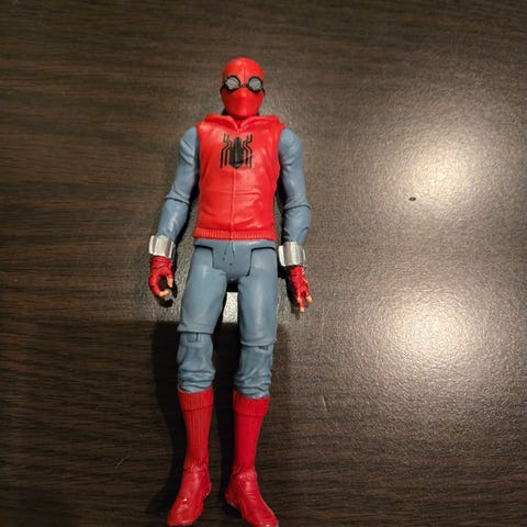 Spider-Man lelufiguuri, valmistettu kovasta muovista. Selkäpuolella on kaksi painiketta, joita painamalla Spider-Manin käsissä olevat narut liikkuvat molemmista käsistä sisään ja ulos. Sopii leikkeihin ja koristeeksi Spider-Man-hahmosta pitäville.