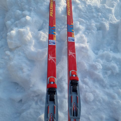 Useamman vuoden vanhat, mutta siistikuntoiset kilpakäyttöön valmistetut luistelusukset. Sopivat parhaiten noin 150-160 cm pitkälle hiihtäjälle. Suksissa Salomonin SNS-siteet.