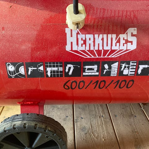 Todella hyväkuntoinen Nova 068A paineilmakompressori. Teho 4 kW, kierrosnopeus 980 r/min. Ilmantuotto 600l/min ja suurin paine 8 bar. Säiliön tilavuus 100 litraa. Kompressorin mitat 115 x 35 x 98 cm. Mukana kuvassa näkyvät renkaat.