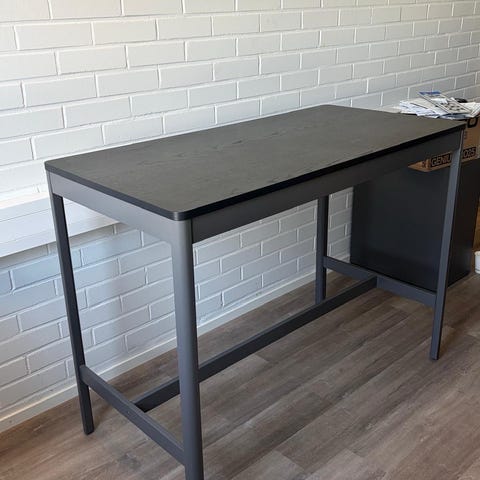 Akustoitu työpiste, jossa harmaa verhoiltu kuori ja valkoinen metallirunko. Sisällä on valkoinen työtaso. Viimeisessä kuvassa mitat! Myydään halvalla liiketoiminnan muuttuessa. 4kpl löytyy.
